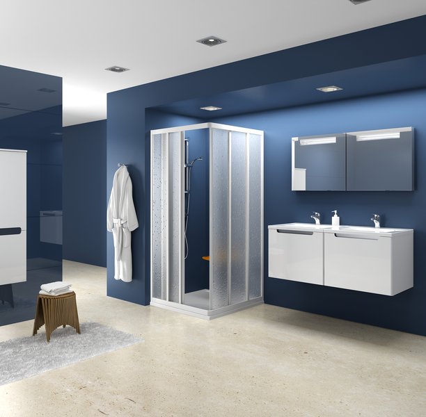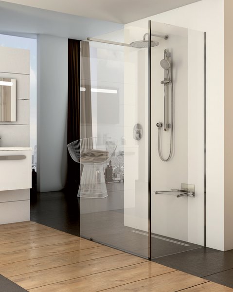 С помощью комбинации душевых дверей c неподвижной стенкой образуете квадратный или прямоугольный душевой уголок желаемого размера.